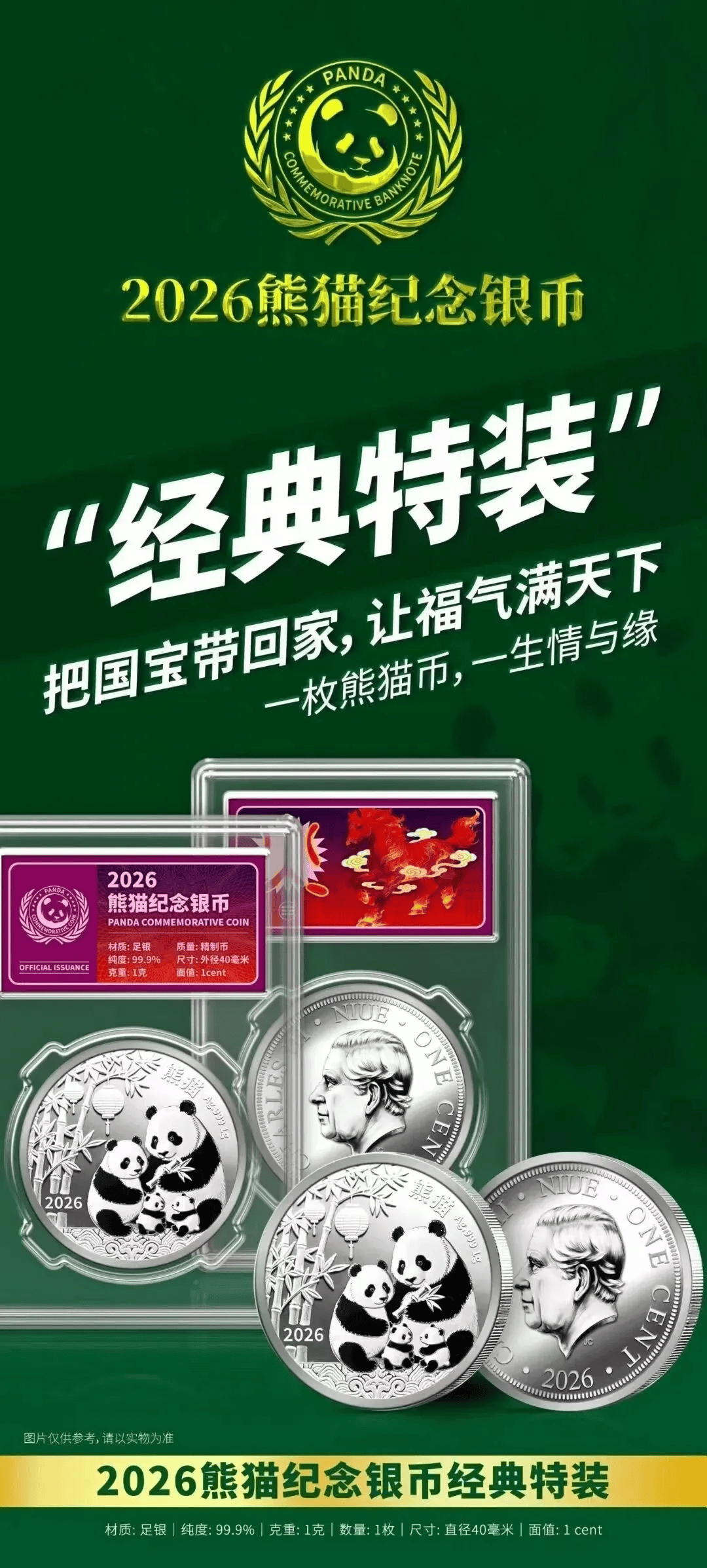 双喜同庆之际,【纽埃权威发行、世界顶*级造币厂-新西兰官方出品】了这枚《2026熊猫纪念银币》