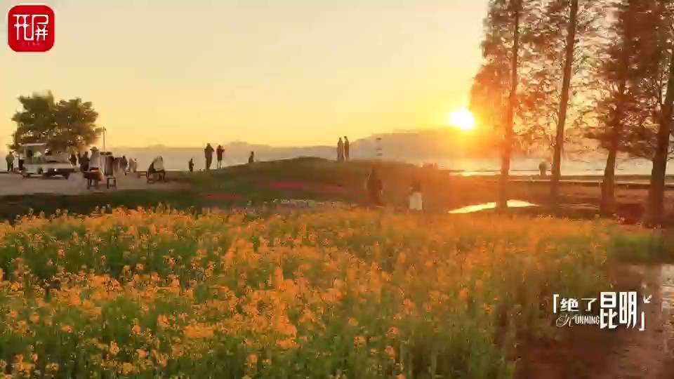 冬春时节的昆明市官渡区日落山海农场,金色油菜花海与落日余晖交相辉映,构成一幅独具春城韵致的治愈画卷。