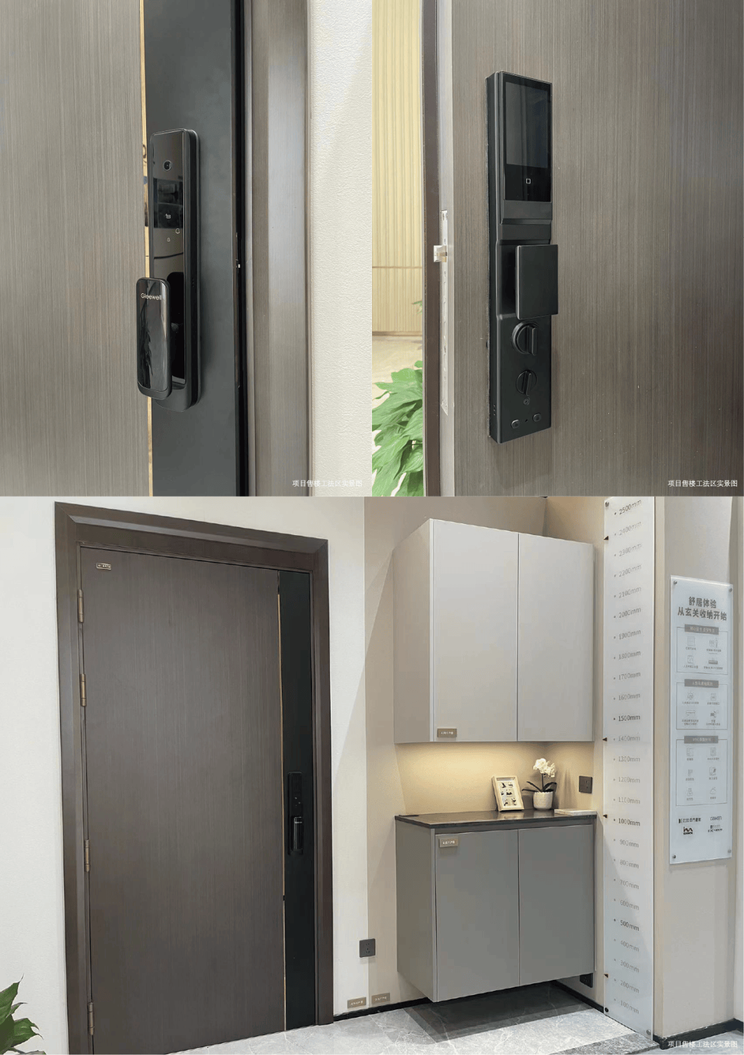 【尊崇入户,安全又贴心】入户门安全坚固,智能锁多种方式开启。玄关柜采用日本最高环保标准的材料,健康无害,内部空间还能灵活调节,特别实用。