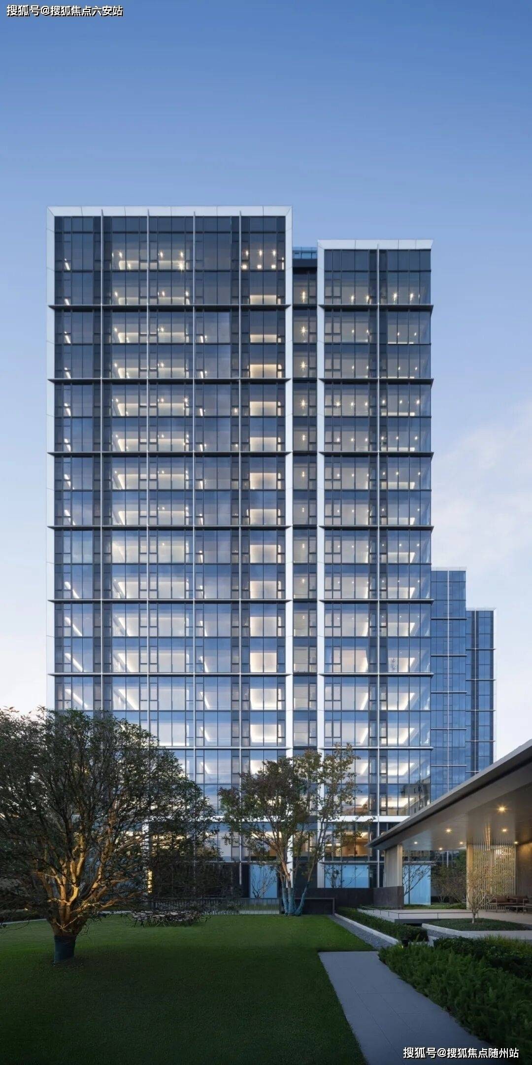 四、建筑美学:银瀑视觉地标,重塑城市天际线. 公建化立面设计建筑由纽约中央公园大厦设计师刘荣禄执笔,以“悬浮空中盒子”为理念,南立面采用近90%玻璃幕墙,搭配银灰色铝板,呈现“银瀑视觉”效果。窗框斜切45°设计,以幕墙级工艺实现极简美学。2. 光影与韵律营造